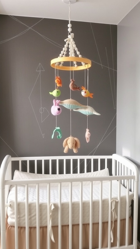 Adding a mobile to your baby girl’s nursery can bring a touch of whimsy and charm. The image showcases a delightful mobile hanging above a cozy crib. Soft colors and playful shapes create a soothing atmosphere, perfect for little ones.