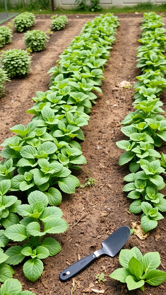 A vegetable garden is a fantastic way to enjoy fresh produce right from your backyard. The image shows healthy rows of green plants, which look like young vegetables growing strong. With a little effort, you can create a similar space filled with your favorite veggies.