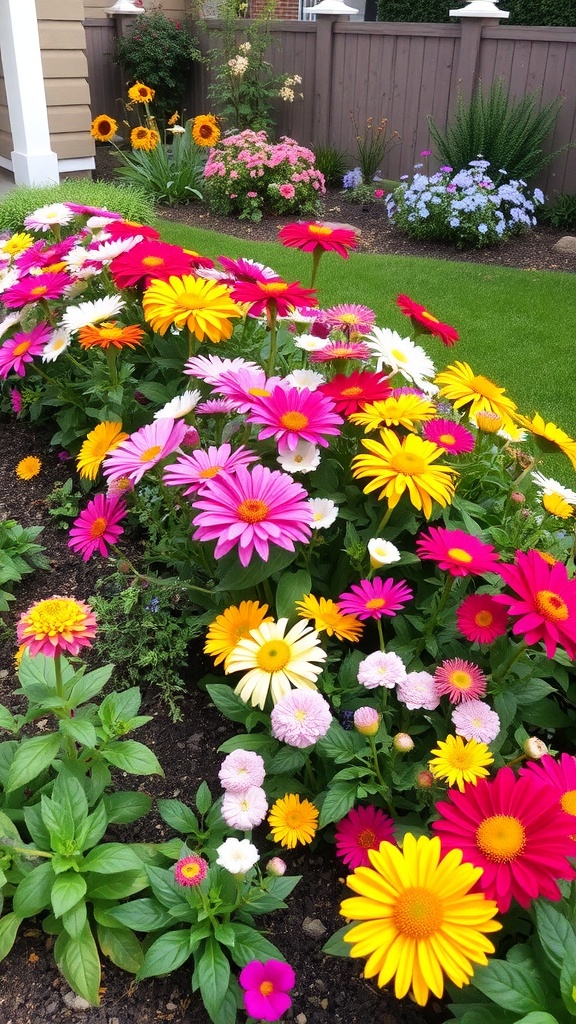 When creating your flower bed, consider mixing various flower types to achieve that lively look. The combination of daisies and gerbera daisies in the image highlights how different shapes and colors can work together harmoniously. Pairing tall plants with shorter ones provides depth and dimension, making your garden feel more dynamic.