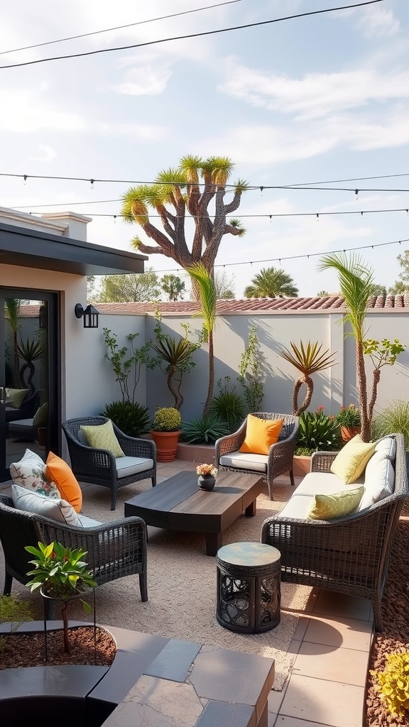 Creating a cozy seating area in your backyard is a great way to enjoy the outdoors. The image showcases a lovely arrangement of comfortable chairs and tables, perfect for relaxing with friends or family. The thoughtful design adds charm to the space.