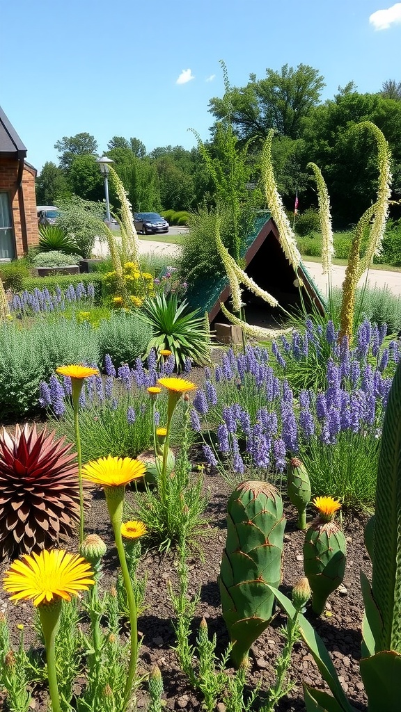 Native plants are a fantastic choice for backyard landscaping. They thrive in local conditions and require less maintenance than non-natives. This garden image showcases a lively mix of colorful native flowers, adding beauty and sustainability to the space. These plants not only look great but also support local wildlife, providing food and habitat for birds, butterflies, and beneficial insects.
