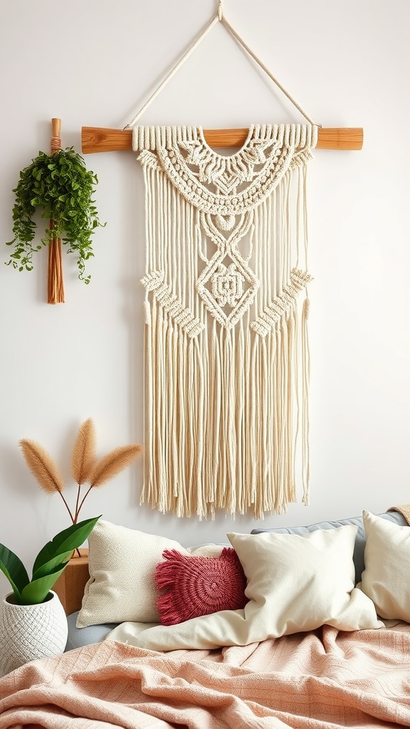 Macramé wall hangings bring a cozy, artistic touch to a boho bedroom. The intricate knots and patterns create a unique visual that draws the eye and adds texture to your space.