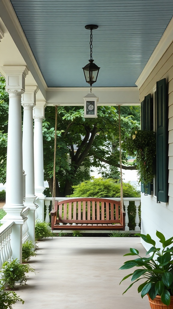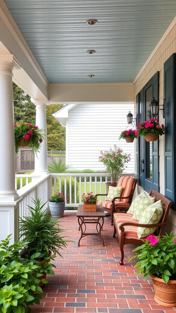 Vertical gardens are a fantastic way to bring life to your front porch. They allow you to make the most of your space while adding color and texture. In the image, you can see an inviting setup with lush greenery hanging from the porch ceiling.