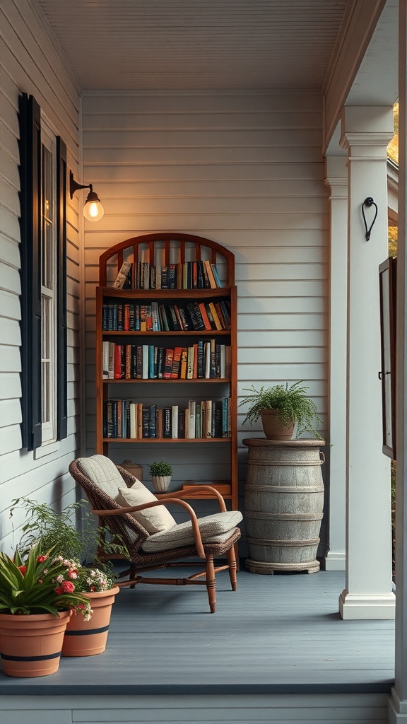 Your front porch can be a perfect reading nook. Imagine a cozy chair, just like the one in the picture, ready for you to sink into with a good book. The soft cushions invite you to relax and unwind, making it an ideal spot to enjoy your favorite stories.
