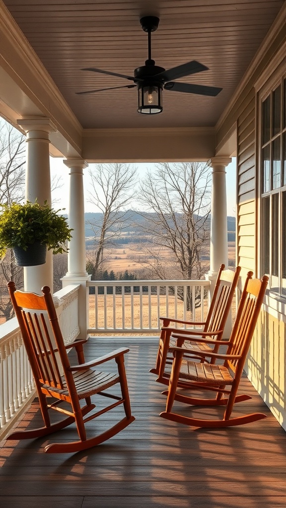 With such a lovely setup, rocking chairs can become a favorite spot for family gatherings or quiet moments alone. They add a cozy touch to your porch and encourage you to slow down and enjoy the moment.