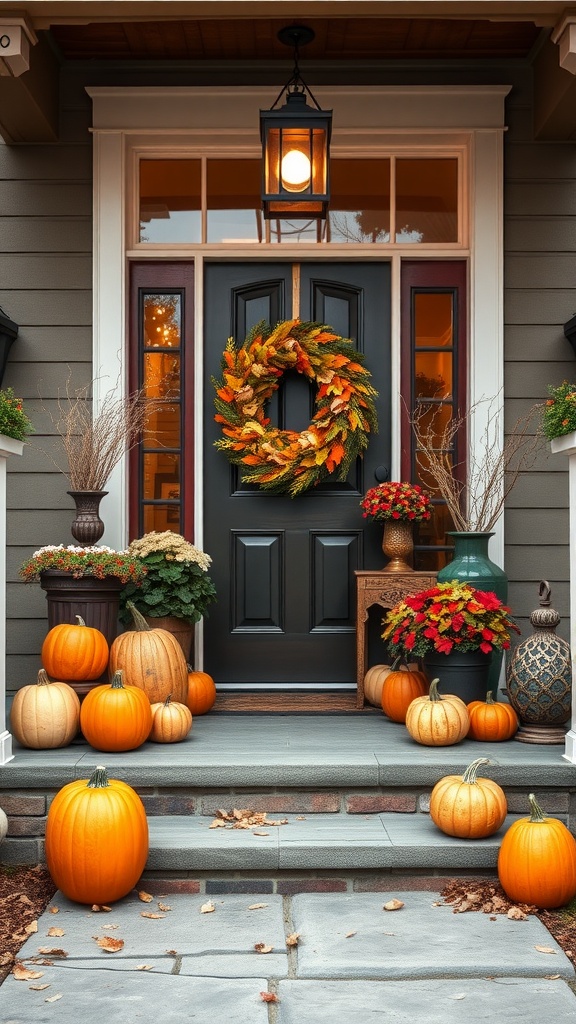 For your own porch, consider using similar elements. A well-placed wreath, seasonal blooms, and a variety of pumpkins can easily elevate the look. Mix different sizes and shapes of pumpkins for visual interest. You can even add a few decorative lanterns for that warm glow as the sun sets.