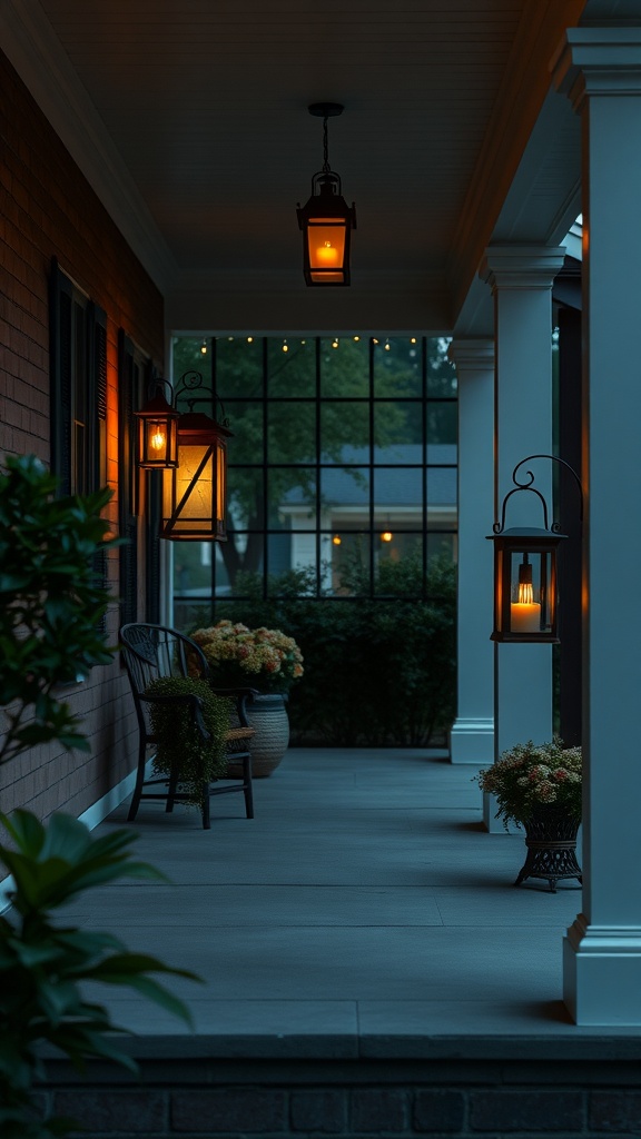 Lanterns bring a cozy charm to any front porch. This image showcases beautifully designed lanterns that light up the space, creating a warm and inviting atmosphere. These lanterns hang elegantly, offering both style and functionality.