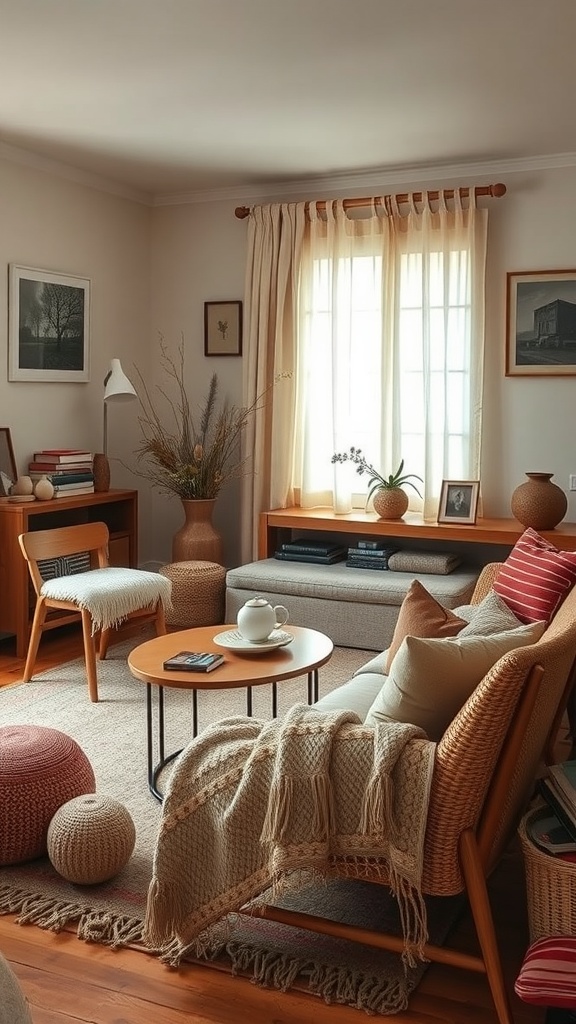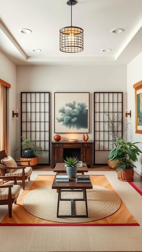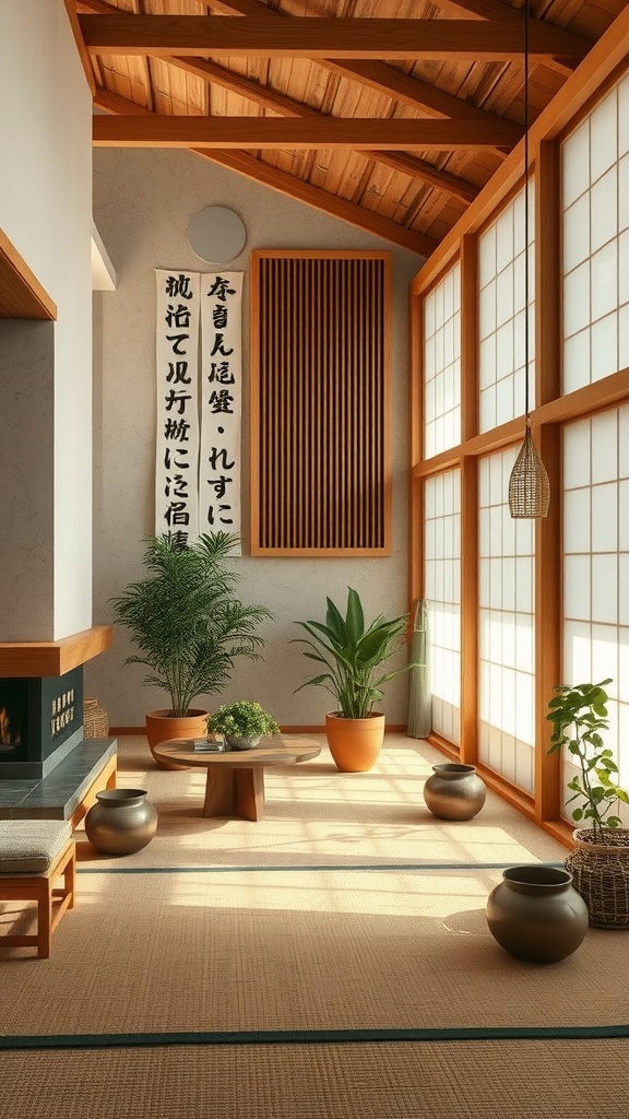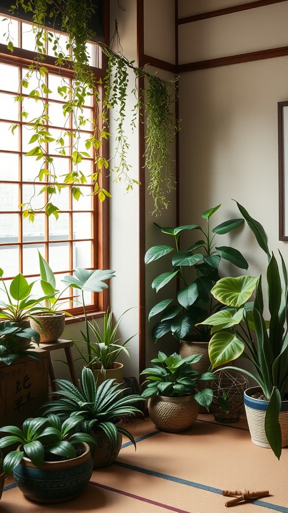 Indoor plants bring a delightful touch to Japandi interiors. They add life and warmth, making spaces feel more inviting. In the image, you can see a variety of greenery placed thoughtfully around a cozy area.