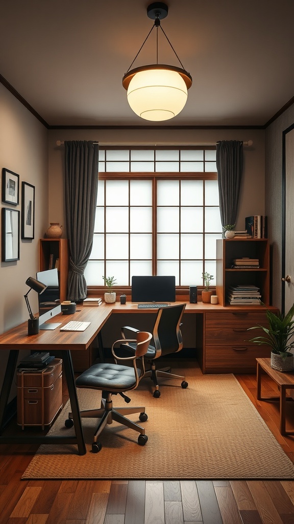 Incorporating Japandi elements, like simple lines and functional design, makes this space both aesthetic and practical. This blend of Japanese minimalism and Scandinavian comfort creates a serene atmosphere, perfect for focusing on tasks.