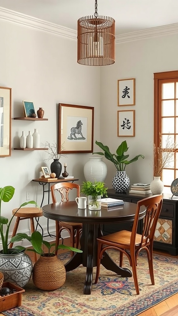 Natural light highlights these displays, drawing attention to the intricate details of each piece. This thoughtful arrangement encourages a connection with nature, making the room feel inviting and warm.