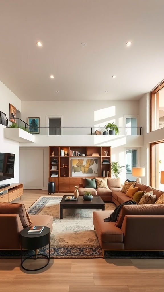 Notice how the use of rugs helps define each zone. They provide a visual cue that separates the spaces while adding warmth to the room. Incorporating plants adds a touch of nature, enhancing the inviting atmosphere.