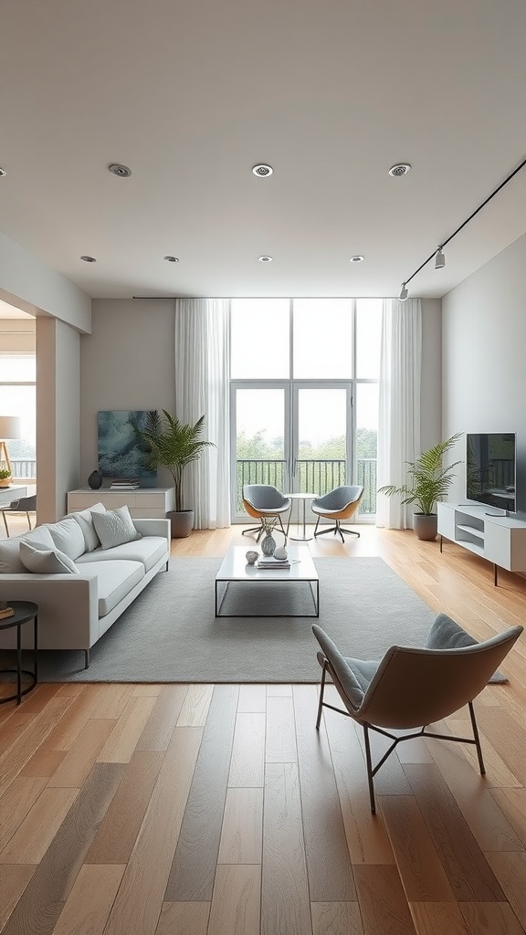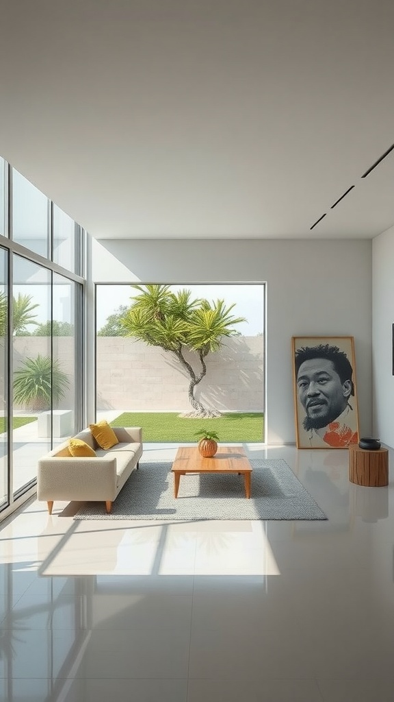 When designing a minimalist living room, remember that simplicity can be striking. Fewer items mean each piece can shine, especially when accented with natural elements. The balance of light and greenery offers a peaceful retreat for anyone looking to unwind.