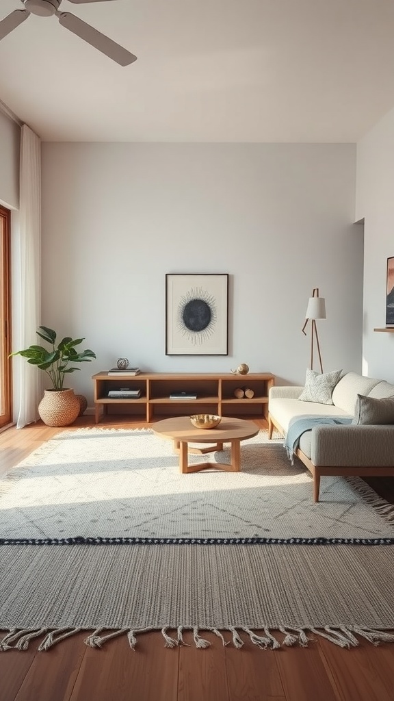 Consider the size of the rug too. It should be large enough to anchor your seating area while leaving some floor space visible. This creates an open feel, typical of minimalist design. Lastly, think about the texture. A soft, cozy rug can encourage relaxation, making the room more inviting for you and your guests.