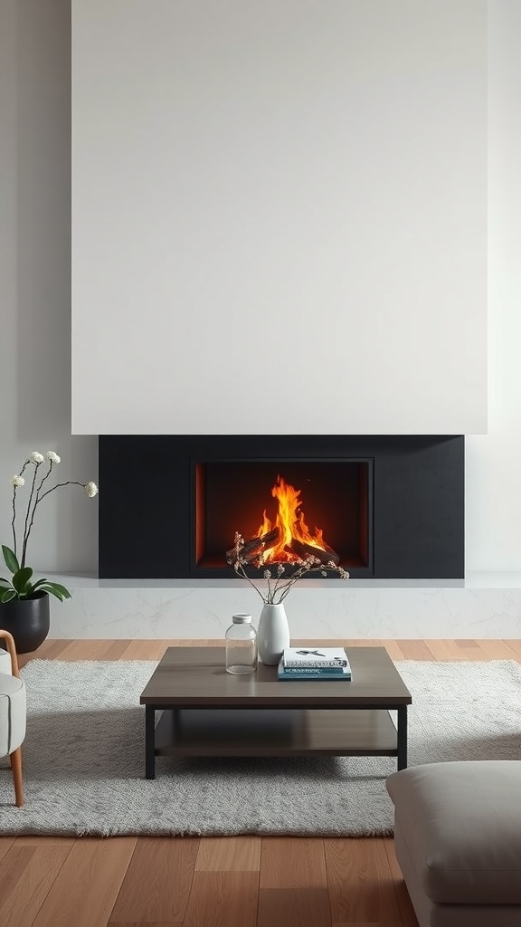 A minimalist fireplace can be a perfect centerpiece for a living room, combining warmth and style. In the image, the sleek lines and simple form highlight the beauty of minimalism. The black frame around the fire creates a striking contrast against the light walls, drawing attention without overwhelming the space.