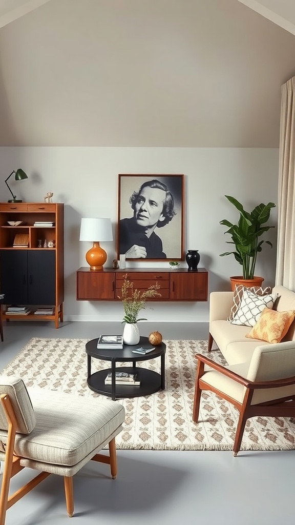 Plants in the corner bring a natural vibe, enhancing the overall feel of the room. The artwork on the wall adds a personal touch, bridging the gap between old and new. This blend shows how you can make a space uniquely yours, echoing both history and modernity.