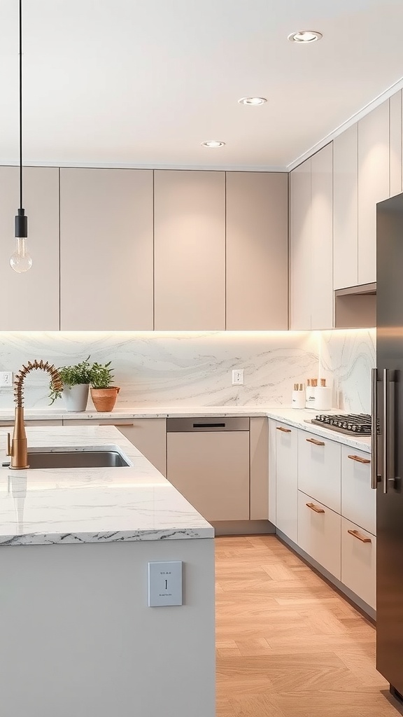 When it comes to modern kitchen design, choosing the right countertop is crucial. The image captures a sleek kitchen with a stunning countertop that combines style and durability. This space showcases light-colored cabinetry and a marble-like surface, which not only looks appealing but also serves practical needs.