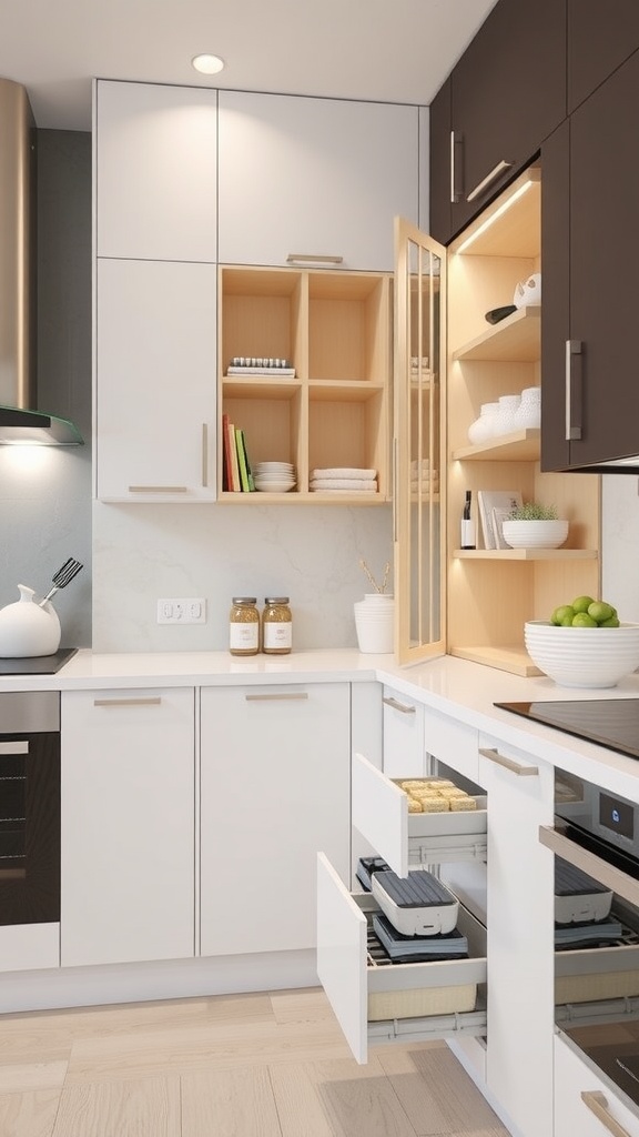 When it comes to modern kitchen design, having functional storage solutions is key. The image showcases a sleek and organized kitchen cabinet that highlights smart storage choices. Notice how each shelf has its place, making it easy to find what you need.