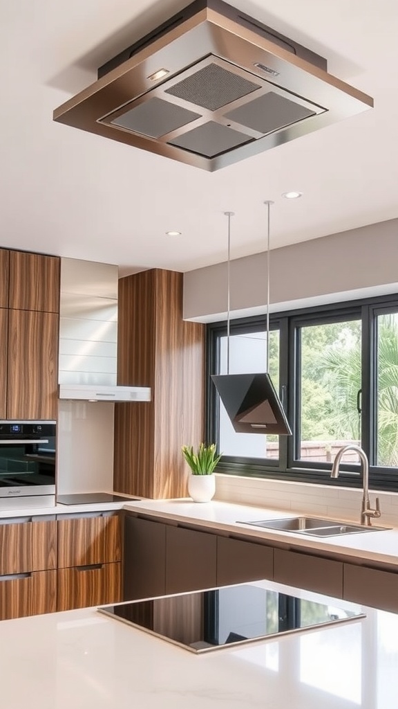 When it comes to modern kitchen design, ventilation is often overlooked, but it’s super important for both functionality and comfort. In the image, you can see a sleek ceiling-mounted ventilation system. This type of system not only helps to keep the air fresh but also blends seamlessly with the overall kitchen aesthetics.