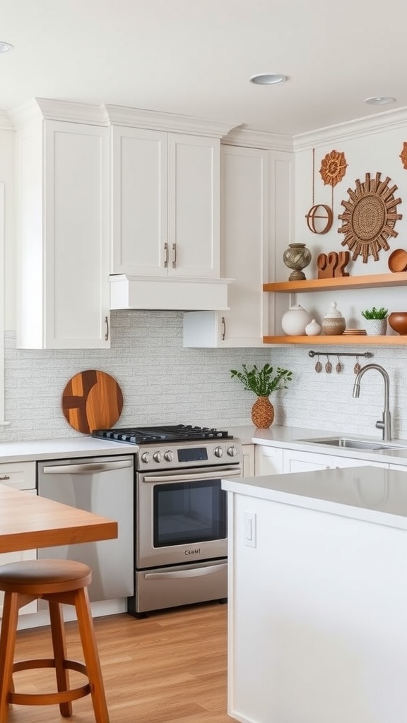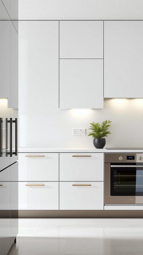Notice how the cabinetry is primarily white, which not only maximizes light but also gives the kitchen a spacious feel. This choice is perfect for smaller areas where you want to create an illusion of more space. The subtle use of metallic handles adds just the right amount of contrast, making the design feel balanced and inviting.
