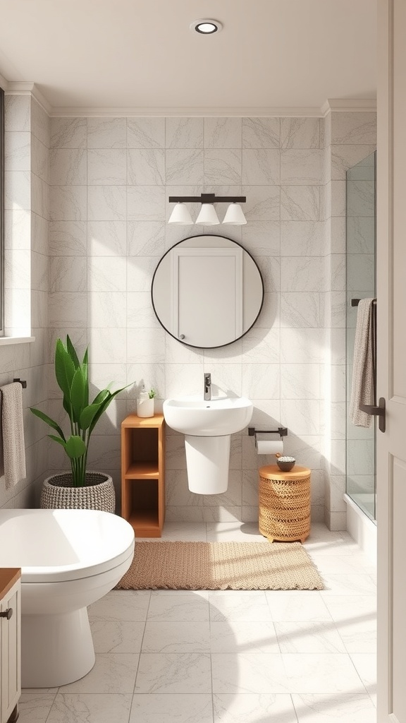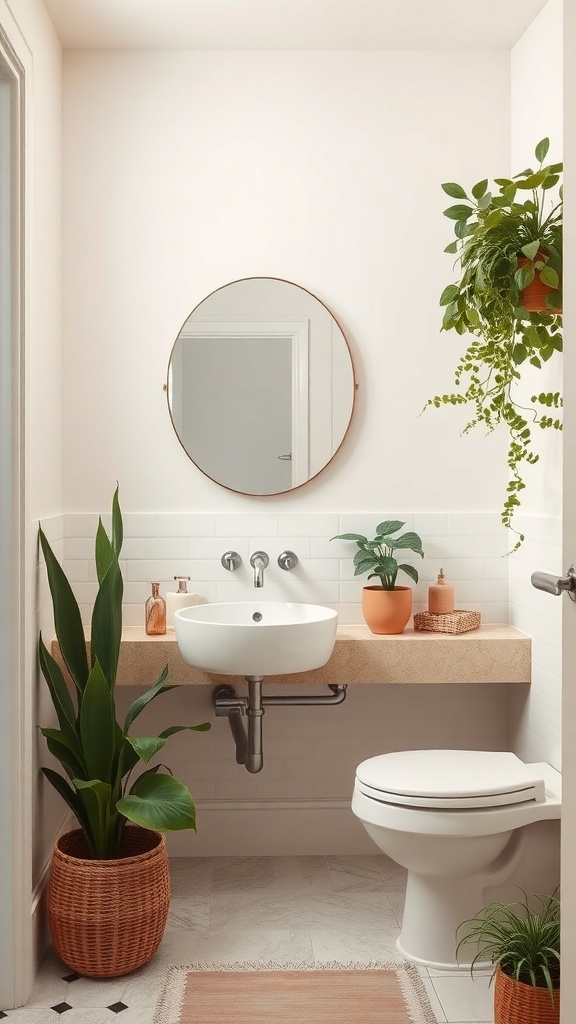 Adding plants to your bathroom can bring a refreshing touch to the space. In the image, you can see a clean, neutral bathroom enhanced by various greenery. The plants not only add color but also improve air quality, making your bathroom feel more inviting.