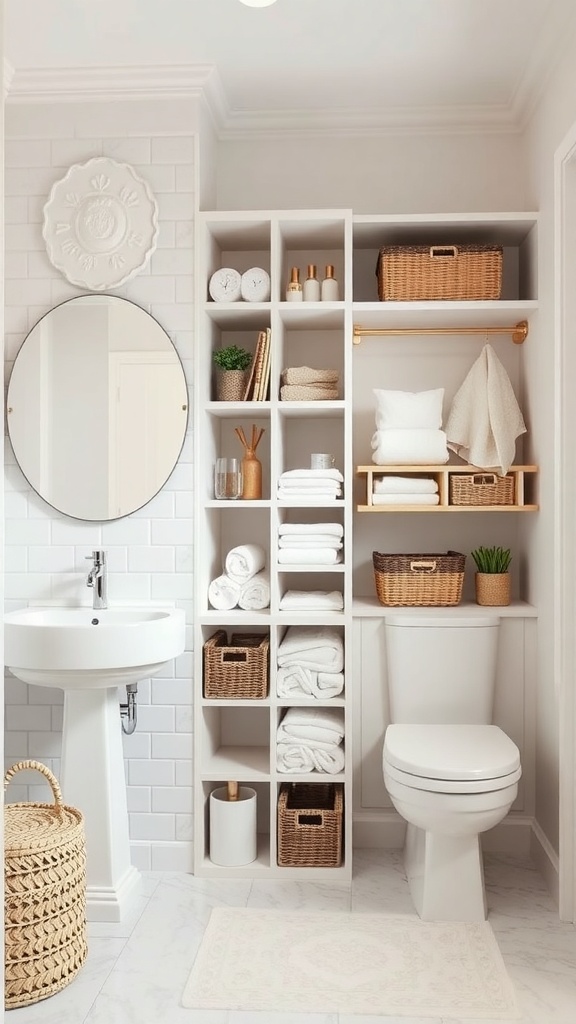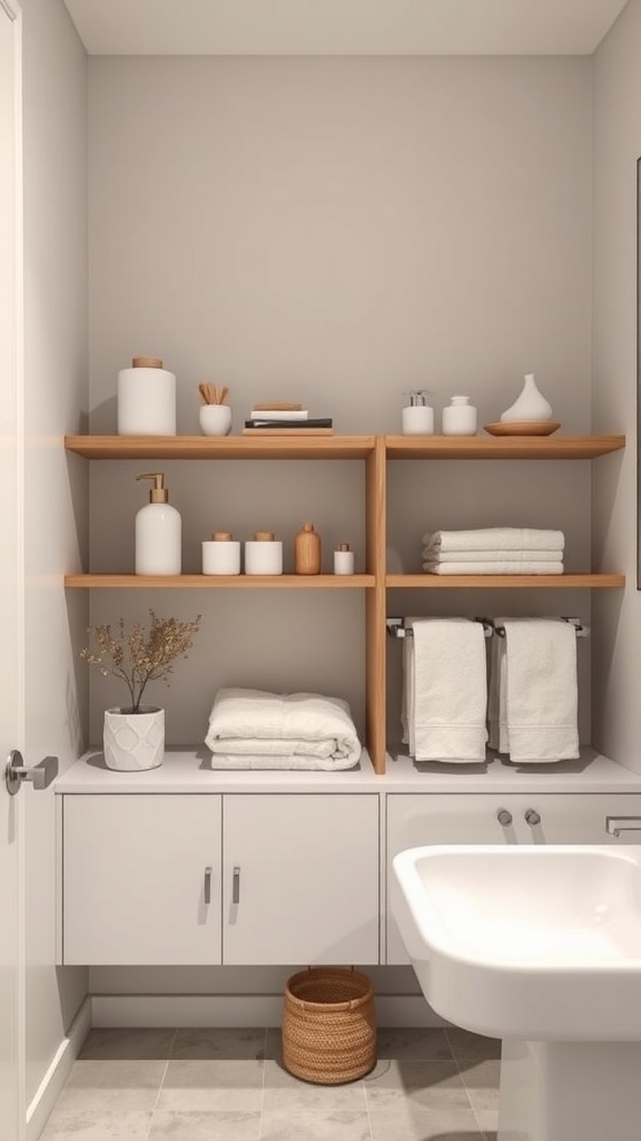 Using open shelving allows for easy access to items you use daily. It also gives you the chance to express your style. You can mix and match different textures and shapes to create a personalized look. This approach makes your bathroom not just functional, but also a reflection of your taste.