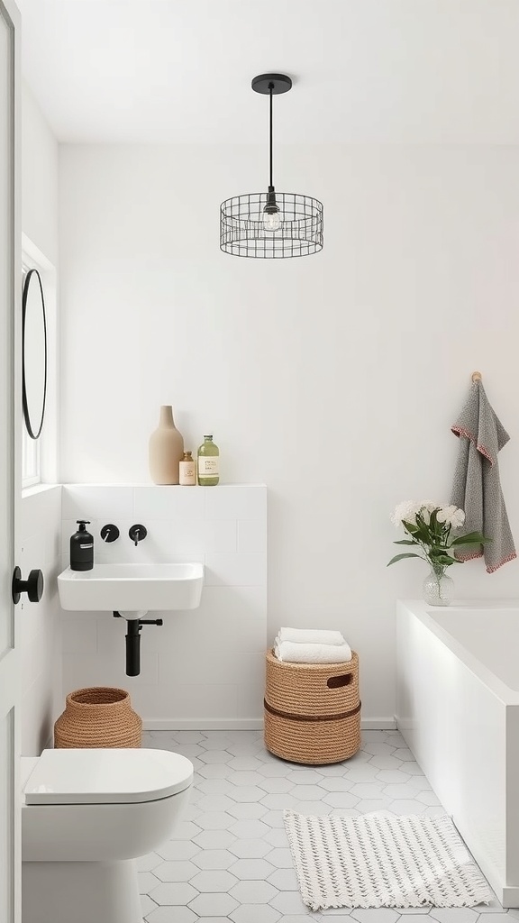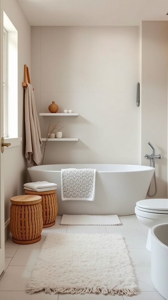 Creating a cozy bathroom is all about layering textiles. In the image, you can see a beautiful setup that showcases how effective this can be. The soft, woven rug adds warmth to the space, inviting you to step in and feel at home.