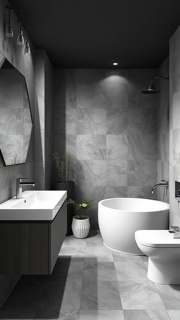 A sleek monochrome bathroom design can create a stunning and modern space. This image showcases a bathroom that uses a simple color palette of black, white, and gray. The clean lines and minimalistic features give it a sophisticated look.