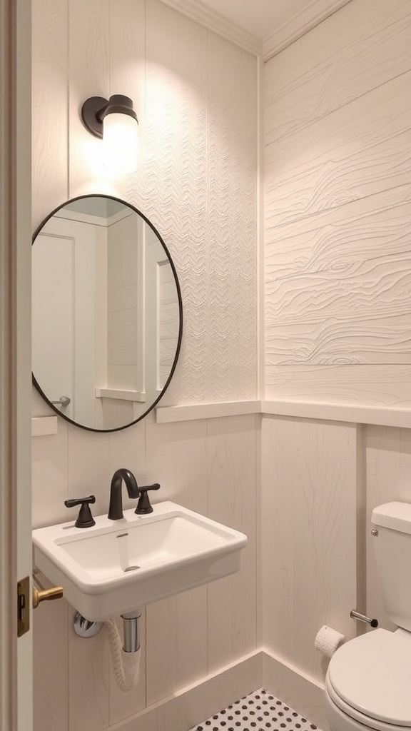 Textured wall treatments can really change the vibe of a bathroom. In the image, we see a clean, neutral space with white paneling that adds depth and interest. The subtle texture of the wall creates a warm and inviting atmosphere, making it feel cozy.