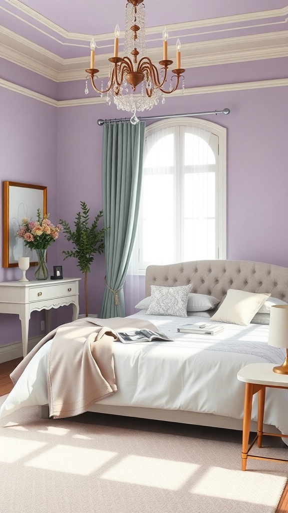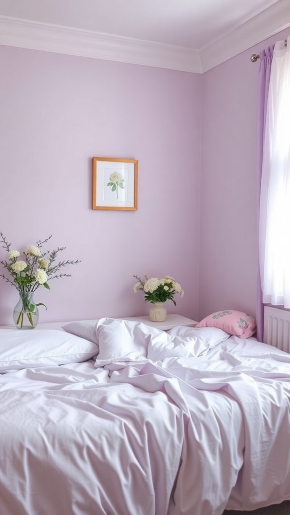 Soft lavender accents can transform any bedroom into a serene retreat. The gentle hue on the walls creates a calming atmosphere, perfect for relaxation. In the image, the lavender walls are complemented by light bedding, which adds to the soft feel of the space.