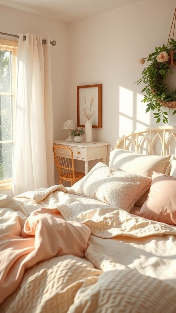 Incorporating pastel colors and textures can transform your bedroom into a serene retreat. Think about how you can mix fabrics and colors to create your own unique look!