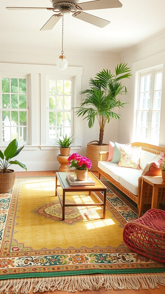 In a summer room, adding colorful area rugs can really make a difference. They serve as a focal point, bringing warmth and personality to your space. Imagine stepping onto a vibrant rug that contrasts beautifully with your furniture.