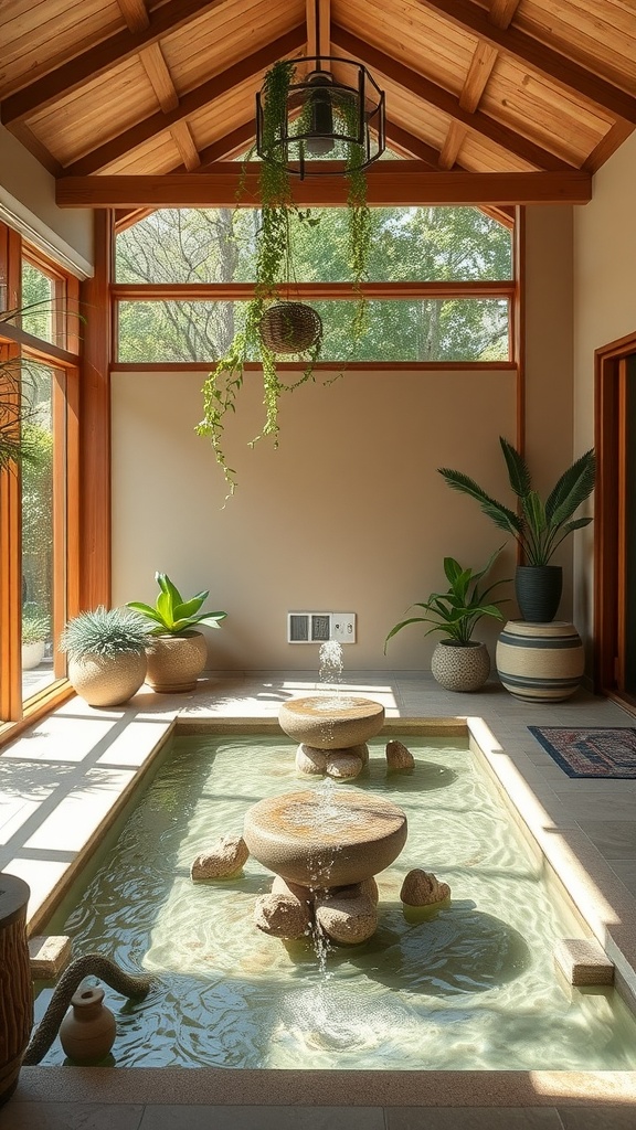 Water features can turn a simple room into a peaceful retreat. In a summer room, they create a refreshing vibe that invites relaxation. The image shows a lovely indoor pond, a perfect example of how water can elevate your space.