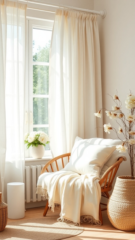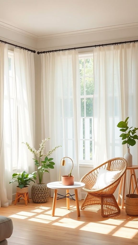 Decorative touches like plants add life, and the rattan chair brings in a touch of warmth. Pairing your curtains with natural materials can enhance that summer vibe. Whether you prefer a modern look or something more traditional, updating your window treatments can freshen up your space quickly.