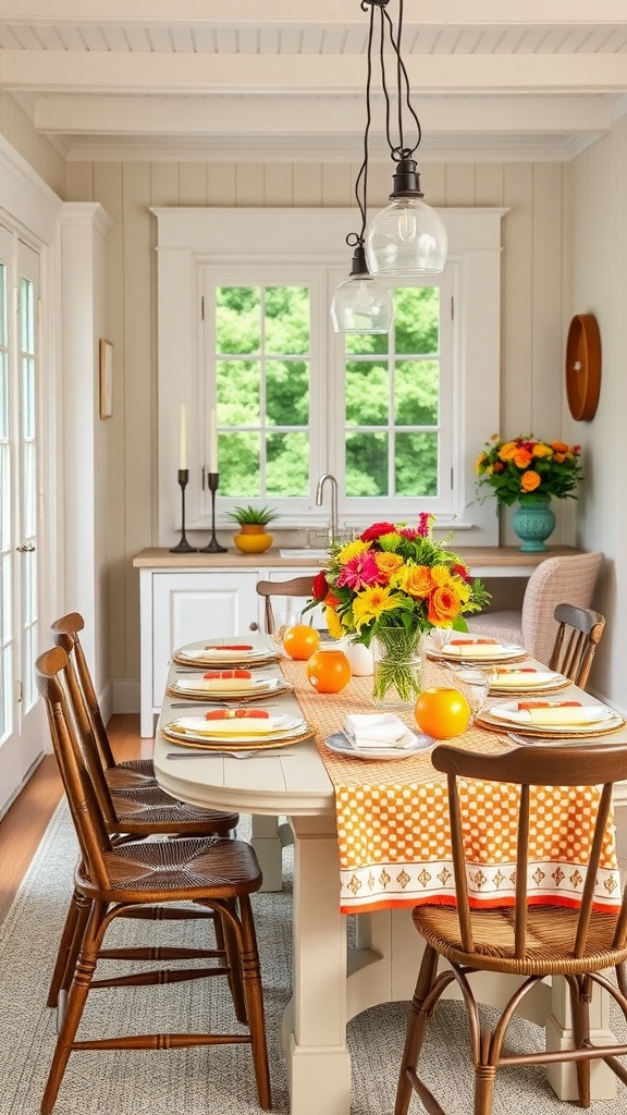To replicate this look, consider using seasonal flowers in a simple vase. Sunflowers and other vibrant blooms bring energy and joy to the table. Pair these with light-colored plates and utensils to enhance that summery feel.