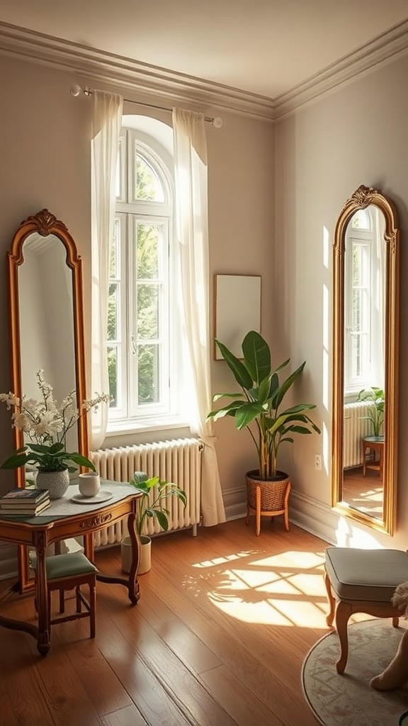 Adding plants, like the one shown, brings a fresh vibe to the room. They thrive in natural light, and the mirrors help showcase their beauty. It’s a simple way to create a relaxing atmosphere perfect for summer.