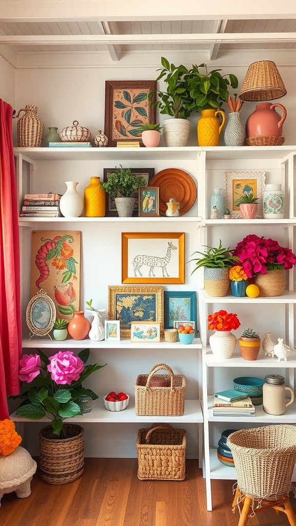 Vertical space can be a game-changer in any room, especially in a summer-inspired setting. The shelves in the image showcase a variety of colorful items that add life and personality to the space.