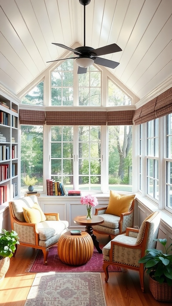 By incorporating plants, the sunroom feels lively and fresh. They not only purify the air but also enhance the vintage aesthetic. It’s a great way to connect with nature while enjoying the comfort of indoors.