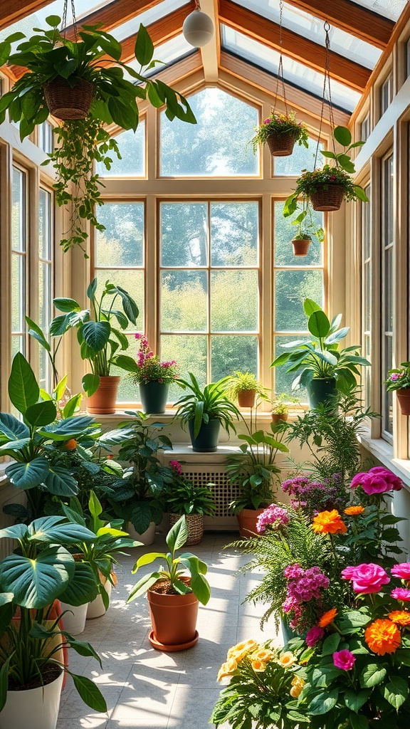 A sunroom can double as a greenhouse, making it a perfect spot for plant lovers. Imagine stepping into a vibrant space filled with greenery, right in the comfort of your home. This cozy area showcases various plants, from hanging vines to potted herbs, all thriving in natural light.