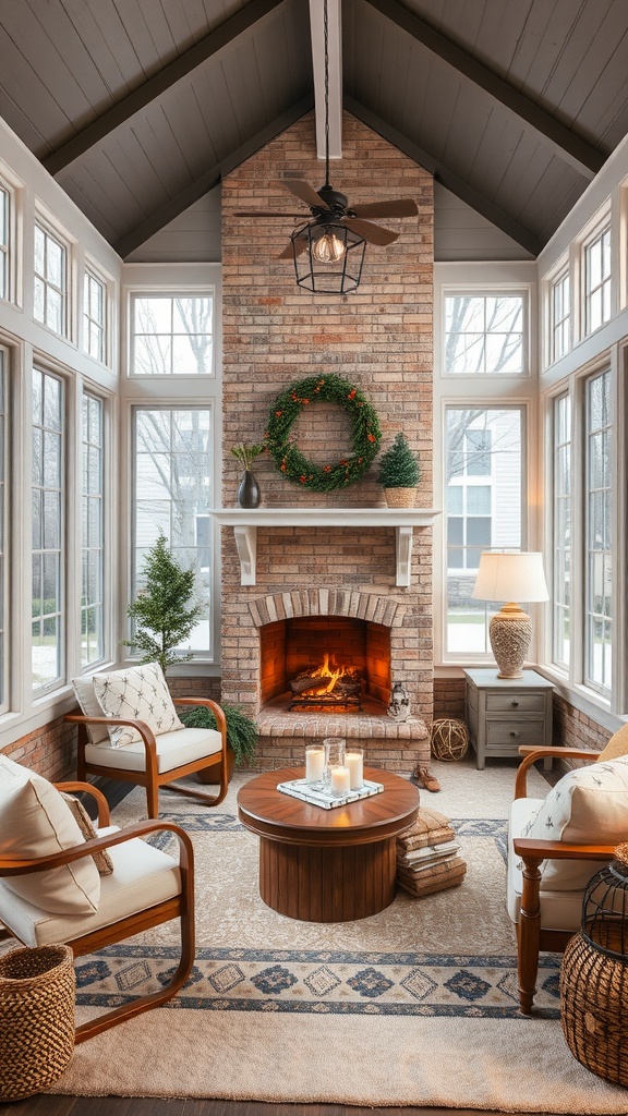 Plants and decorations like wreaths or candles can add a personal touch. They bring life and color, making the space feel even more welcoming. The natural elements combined with the warmth of the fireplace turn the sunroom into a year-round haven.