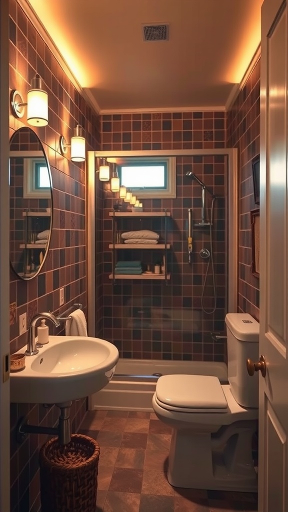 Adding a unique light fixture above the sink provides extra style without taking up space. The combination of tiles and thoughtful decor choices can completely transform a tiny bathroom into a stylish retreat.