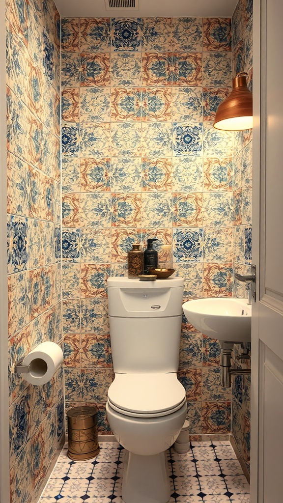 When working with tiny bathrooms, tiles can be a game changer. The image shows a compact space featuring beautifully patterned tiles that draw the eye and add a pop of color. The design brings personality to an otherwise small area.