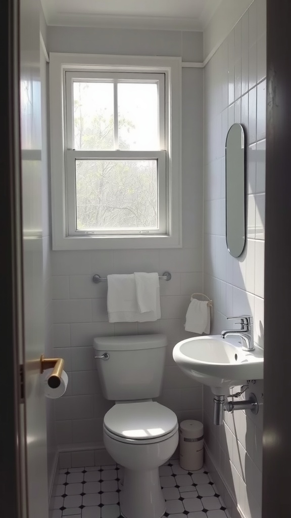 Bringing natural light into a tiny bathroom can instantly make it feel larger and more inviting. In the image, we see a well-lit bathroom with a clear window allowing sunlight to stream in. This simple addition can brighten up even the smallest spaces.