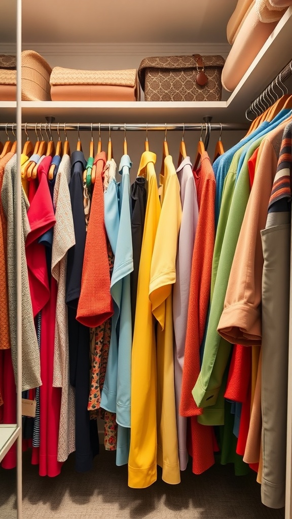 When organizing, consider grouping similar colors together. For example, you can start with light colors on one end, gradually transitioning to darker shades. This arrangement creates a visual flow that’s pleasing to the eye. Plus, having everything sorted by color means less time rummaging through a jumble of clothes. You’ll always be able to grab what you need, making your daily routine smoother.