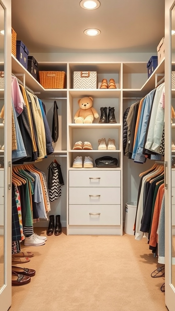Remember to leave some space for folded items, like sweaters and pants, which can be stacked neatly on shelves. This organization will make getting dressed a breeze!