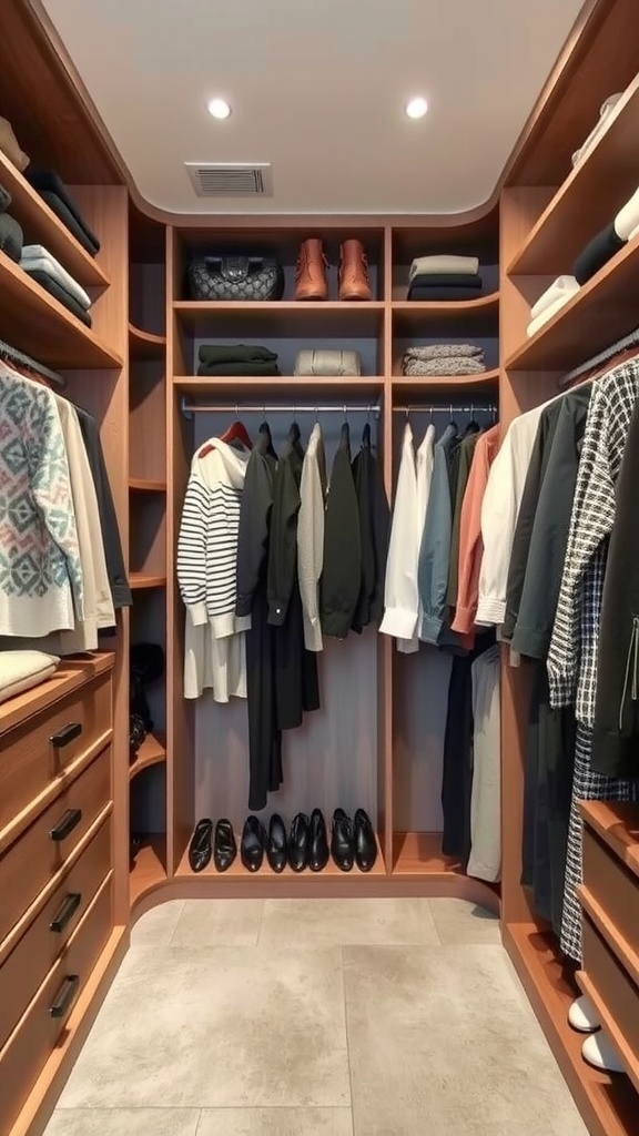 Using shelves that extend into corners allows for better organization. You can display shoes, bags, or folded clothes, keeping everything within reach. This design also gives a clean look, making the space feel less cluttered.