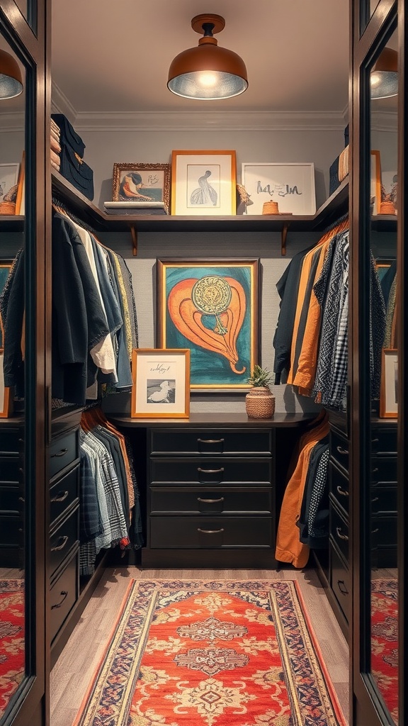 Artwork doesn’t just fill the walls; it tells a story. Each piece can remind you of special moments or loved ones. Consider hanging framed pictures of family or friends, or even artwork by your kids. This can create an inviting atmosphere, making your closet feel more like a personal retreat.