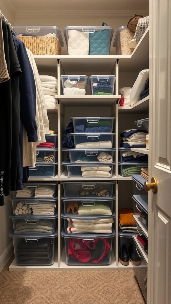 Using labeled bins can enhance this system even further. You can quickly find your favorite sweaters, scarves, or shoes without any hassle. This simple strategy can transform your closet into a functional and stylish space.