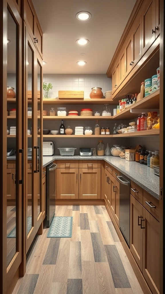 The countertops provide extra space for food prep or storing appliances. This multi-functional aspect is key in making the most out of your pantry. Whether you’re baking or just need a spot to set down groceries, this design has you covered.