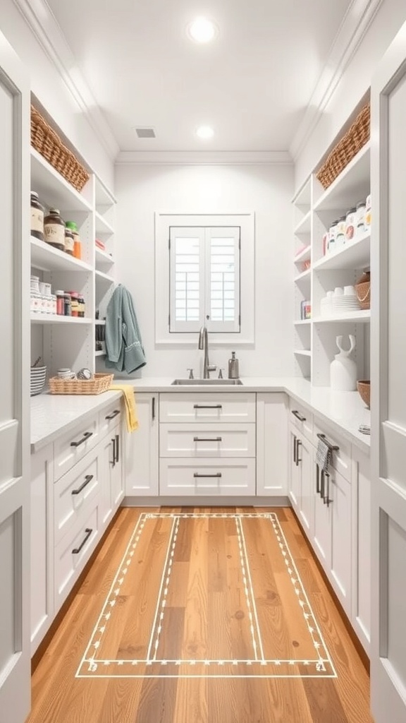 A well-designed pantry can be a game changer in your kitchen. This image showcases a spacious walk-in pantry that is both functional and organized. The layout allows for easy access to all your essentials, making meal prep a breeze.