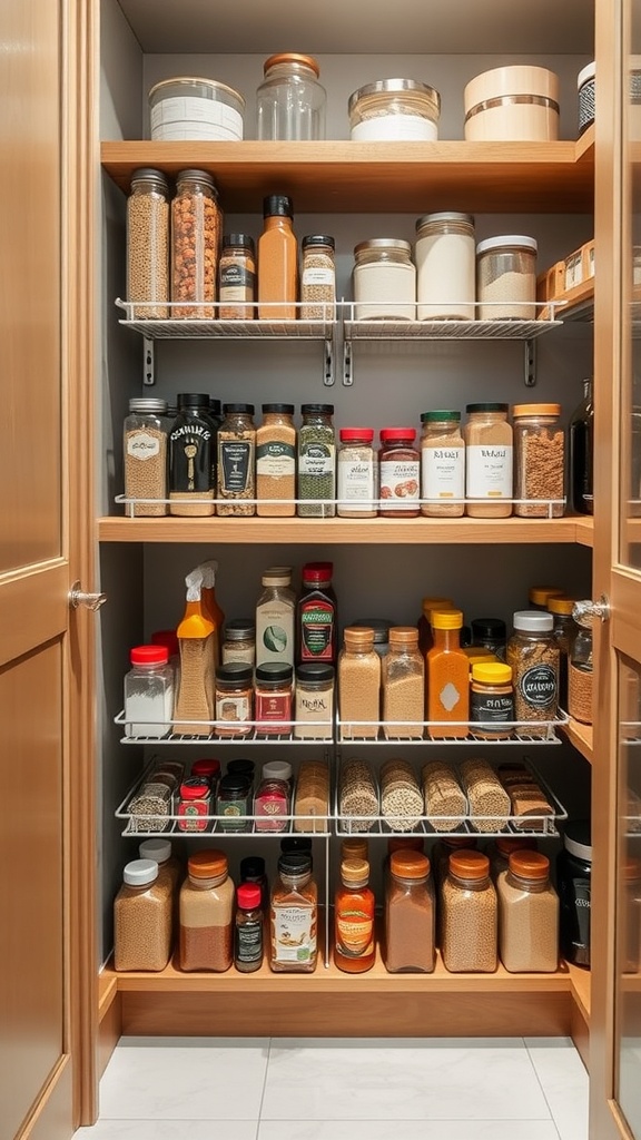 Don’t forget to include a section for frequently used items. Having a dedicated space for these can save you time when cooking. The pantry shown has a neat setup that allows for easy access to essentials.